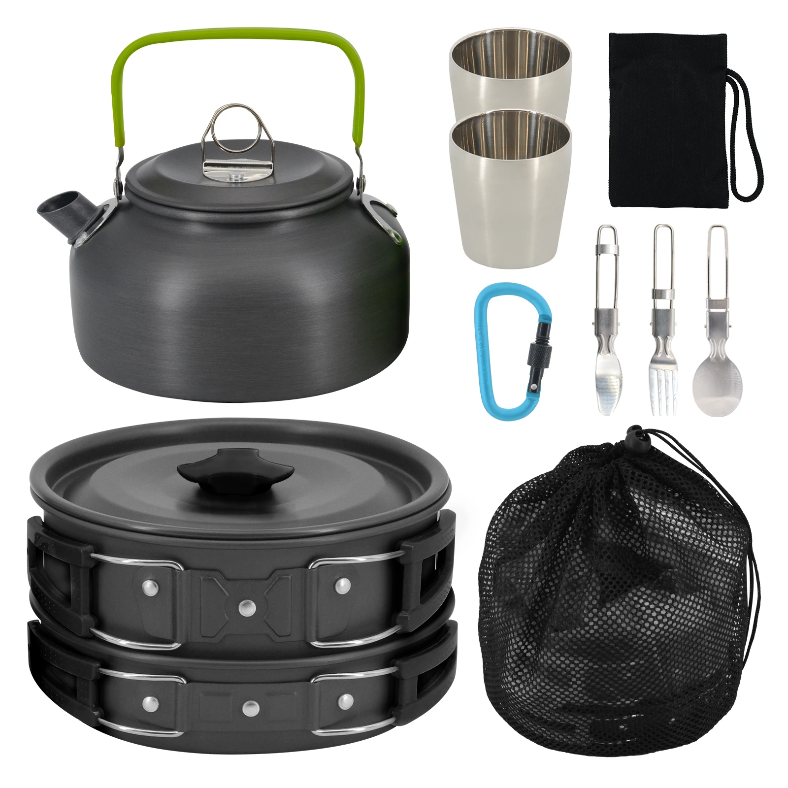 11piece Induction Compatible Outdoor Cookware Set with Stainless steel cup for Easy Backpacking Picnic & Camping