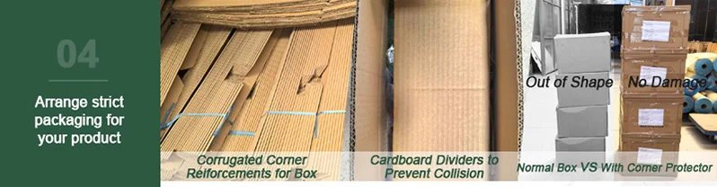 Moisture-proof pad or bag, and cardboard dividers are prepared in the box to prevent each product collision during the ocean or air shipping. We try our best to supply enough protection solutions to your products via suitable package. Zero Damage in the transit is always what we pursue.