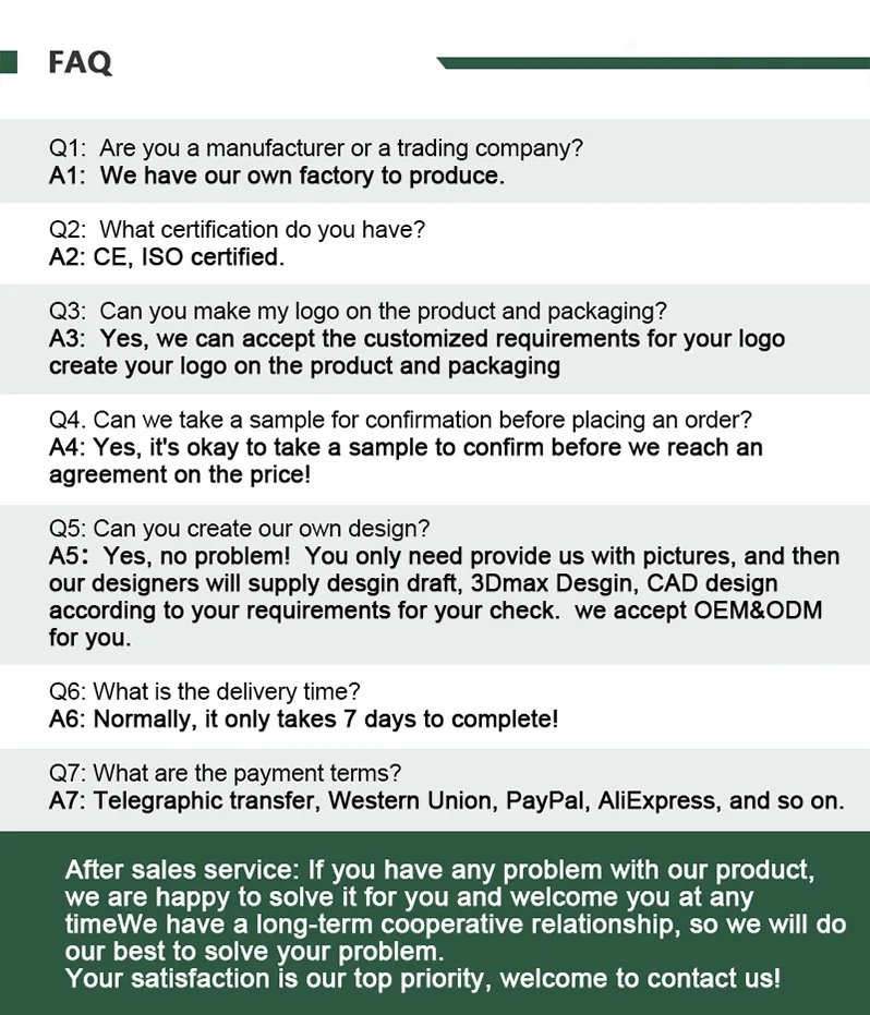 We supply the engrave/stamp logo, silk printing logo, laser logo for your unique brands, or other ways u prefer, pls share with us.