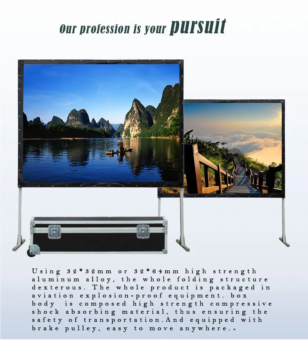 1. Lightweight ,easy installation, fold screen and carry bag is convenient for storage and transportation